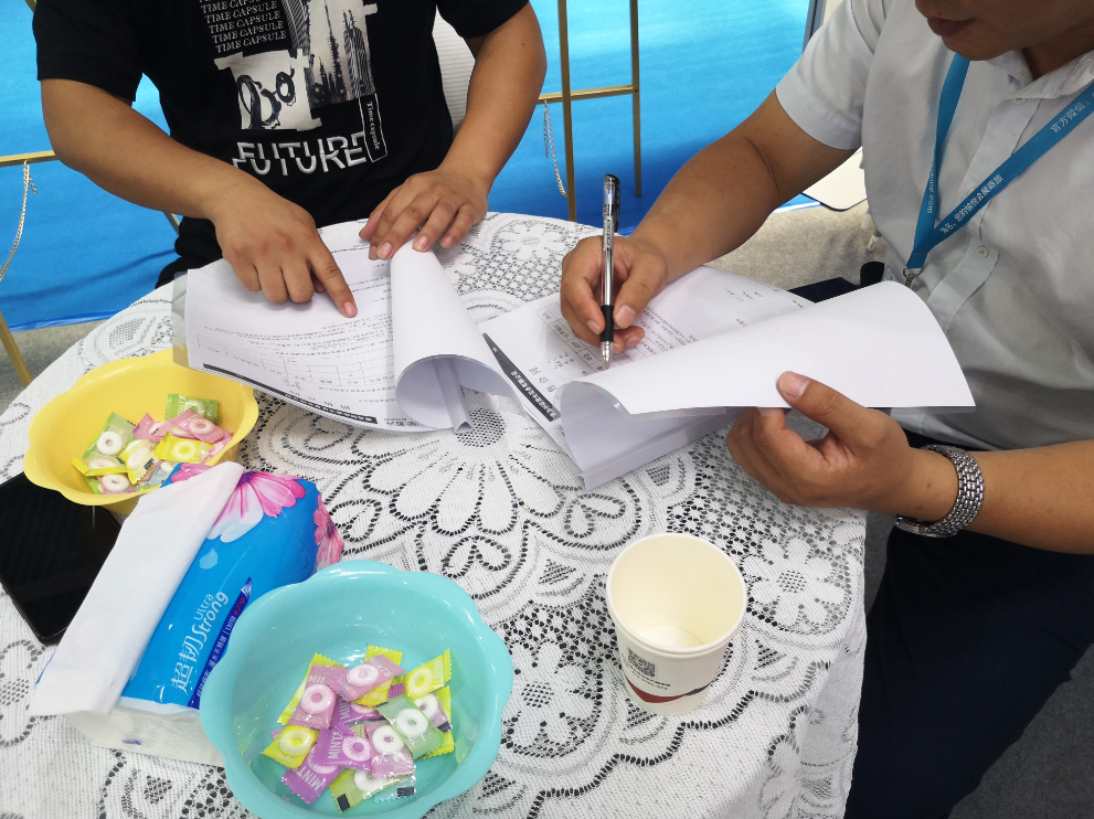 现场咨询客户络绎不绝,大批客户纷纷驻足咨询洽谈。电话,微信,名片,我们在短短几分钟的时间里,以最快的速度构架起我们直接的联系桥梁。